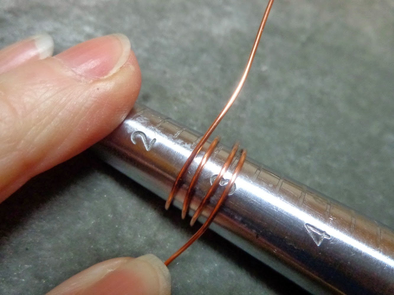 – a seed bead tube, a wooden dowel, a sharpie pen, etc. I am using my ring mandrel in my example below. Wrap the wire once