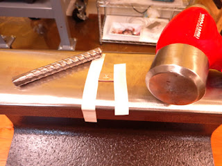 A couple of weeks ago, Tammy Jones had a post related to 1-hour rings. In this post was a quick, down and dirty tutorial to make a sterling silver ring that resembled bamboo (if interested, here is the link to that blog post). The tutorial (by artist Elizabeth Ann Tokoly) starts with a sterling silver ring already soldered and formed. After reading through the steps involved, I felt a thick gauge wire would work best - so I grabbed 6 gauge.